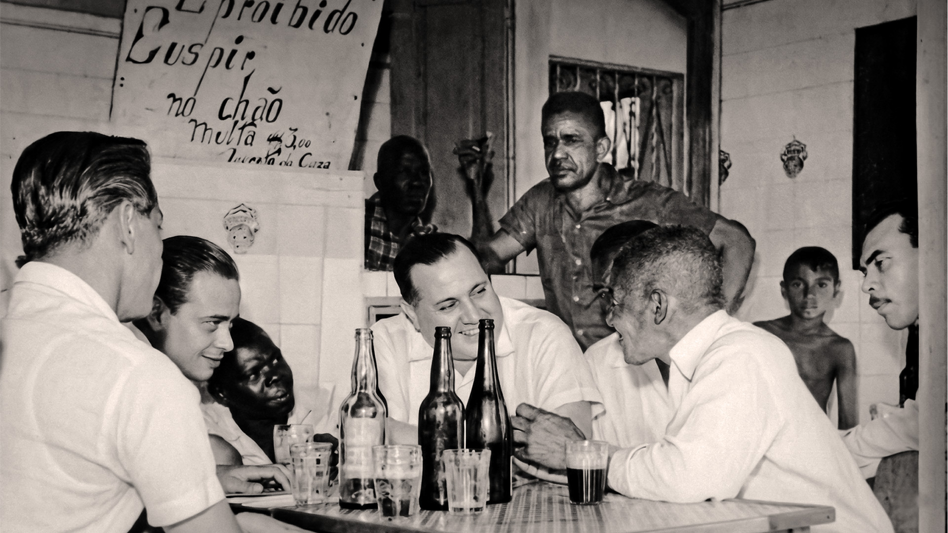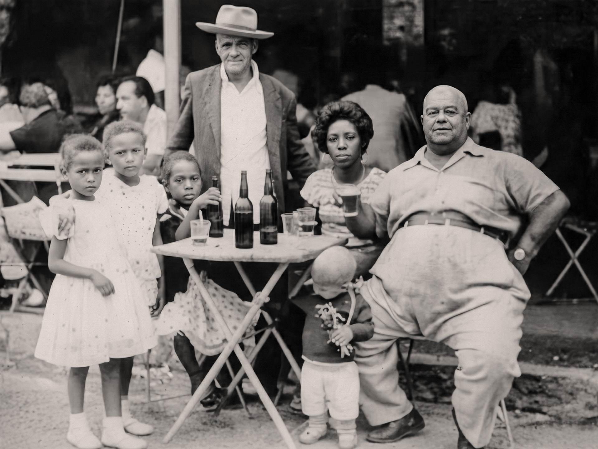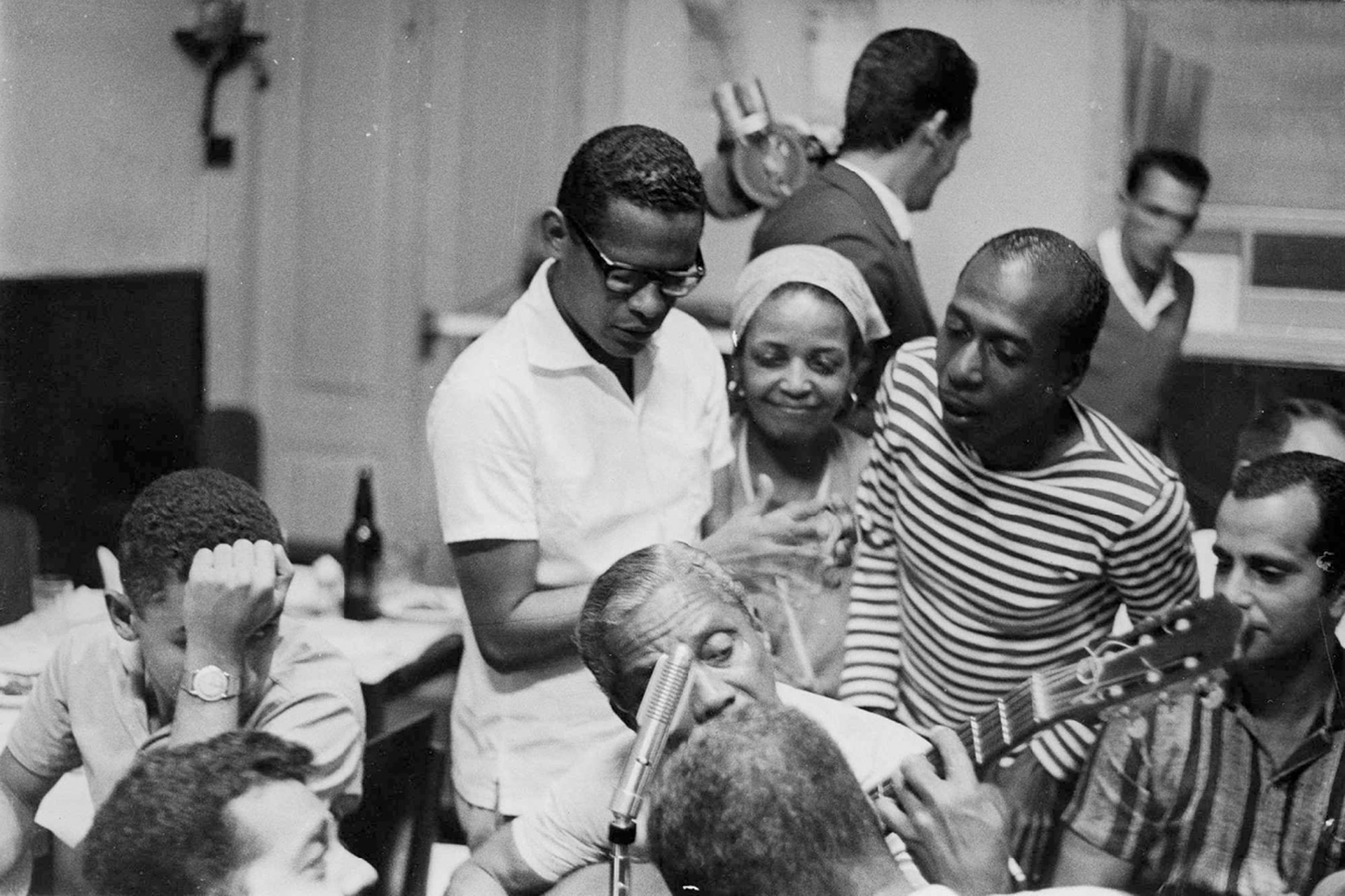- Elton Medeiros, dona Zica, Zé Keti, Nélson Cavaquinho, Amauri Monteiro, Sérgio Cabral e Cartola no Zicartola, 1960 — José Ramos Tinhorão/IMS (JPG)