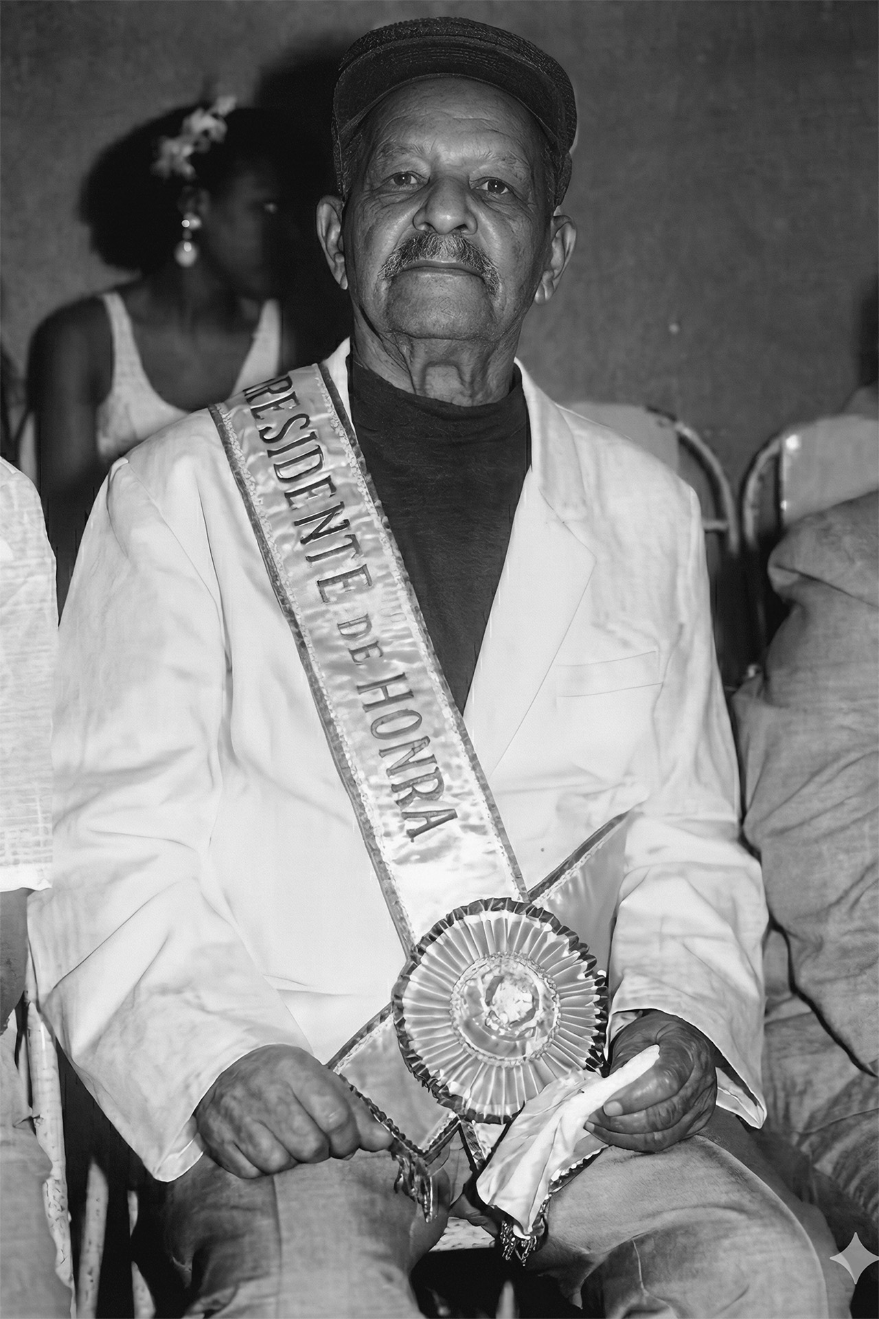 - Carlos Cachaça, com a faixa de Presidente de Honra da Mangueira — A Voz do Morro, novembro de 2001 (JPG)