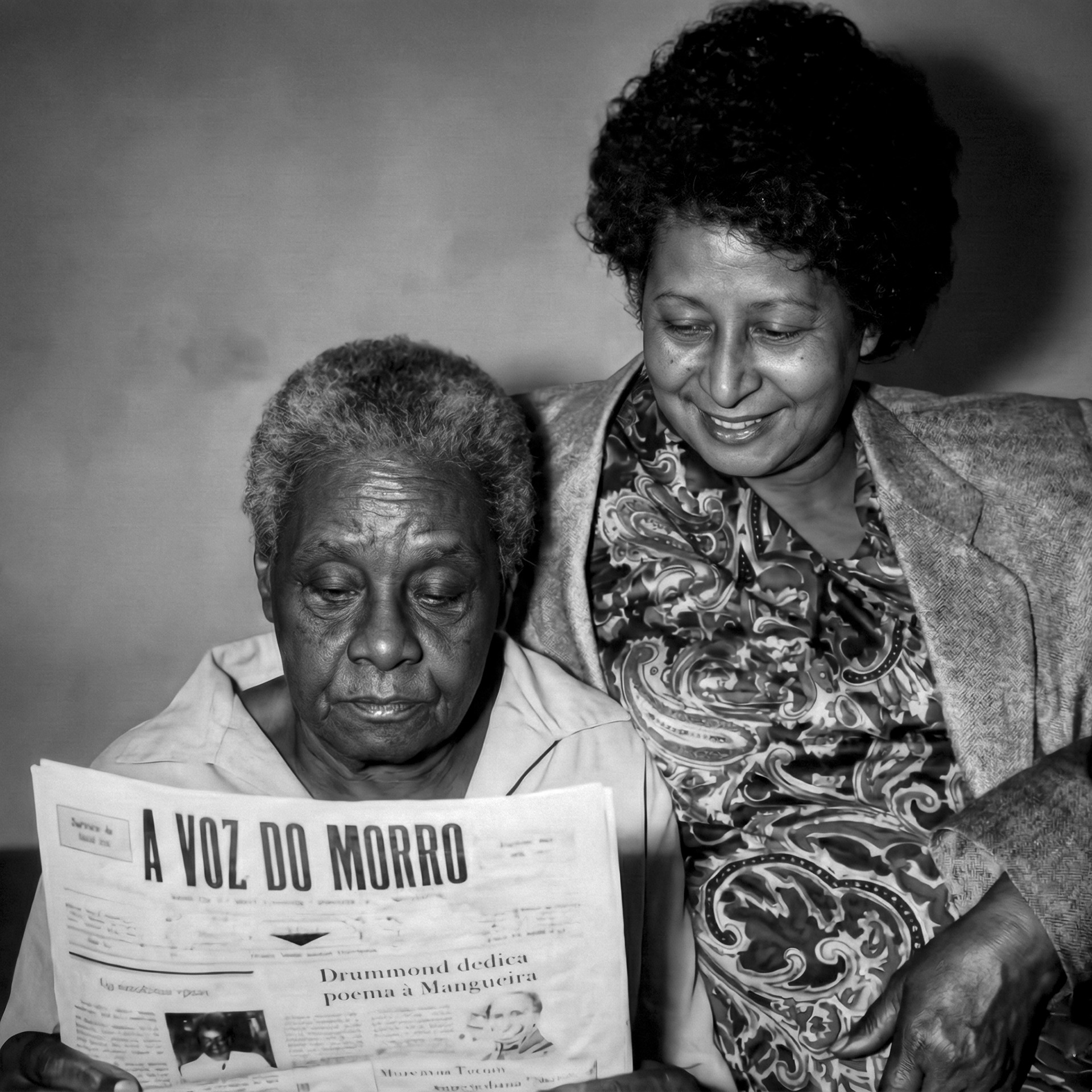 - Dona Raimunda, primeira porta-bandeira da Mangueira, lendo A Voz do Morro com dona Neuma, 1986 (JPG)
