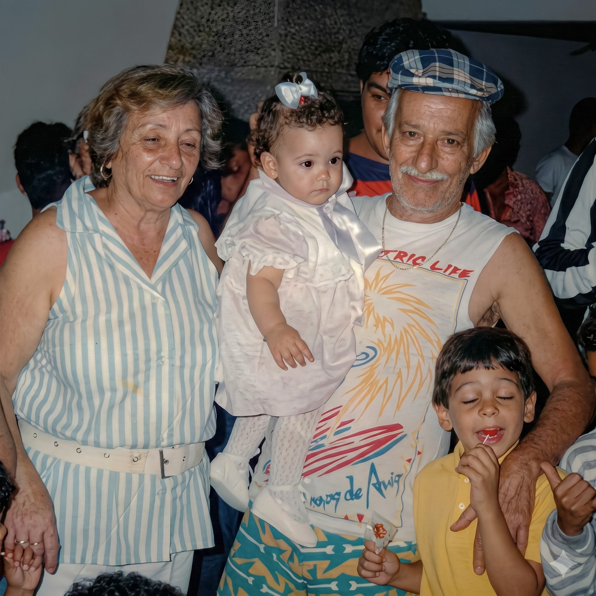 - Moacir (Melão), dona Natalina e os netos Jéssica e Alexandro, 1989 — acervo da família (JPG)