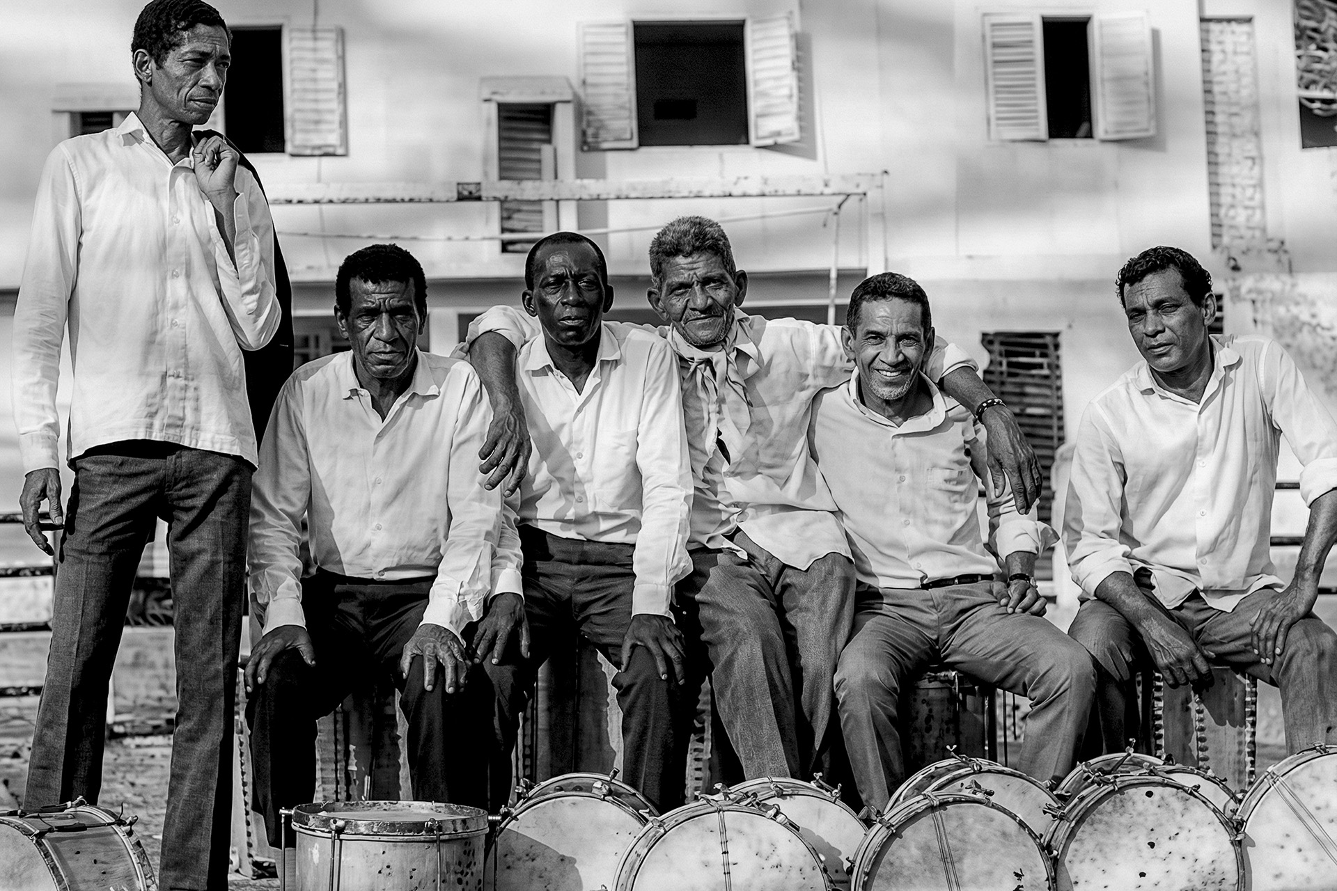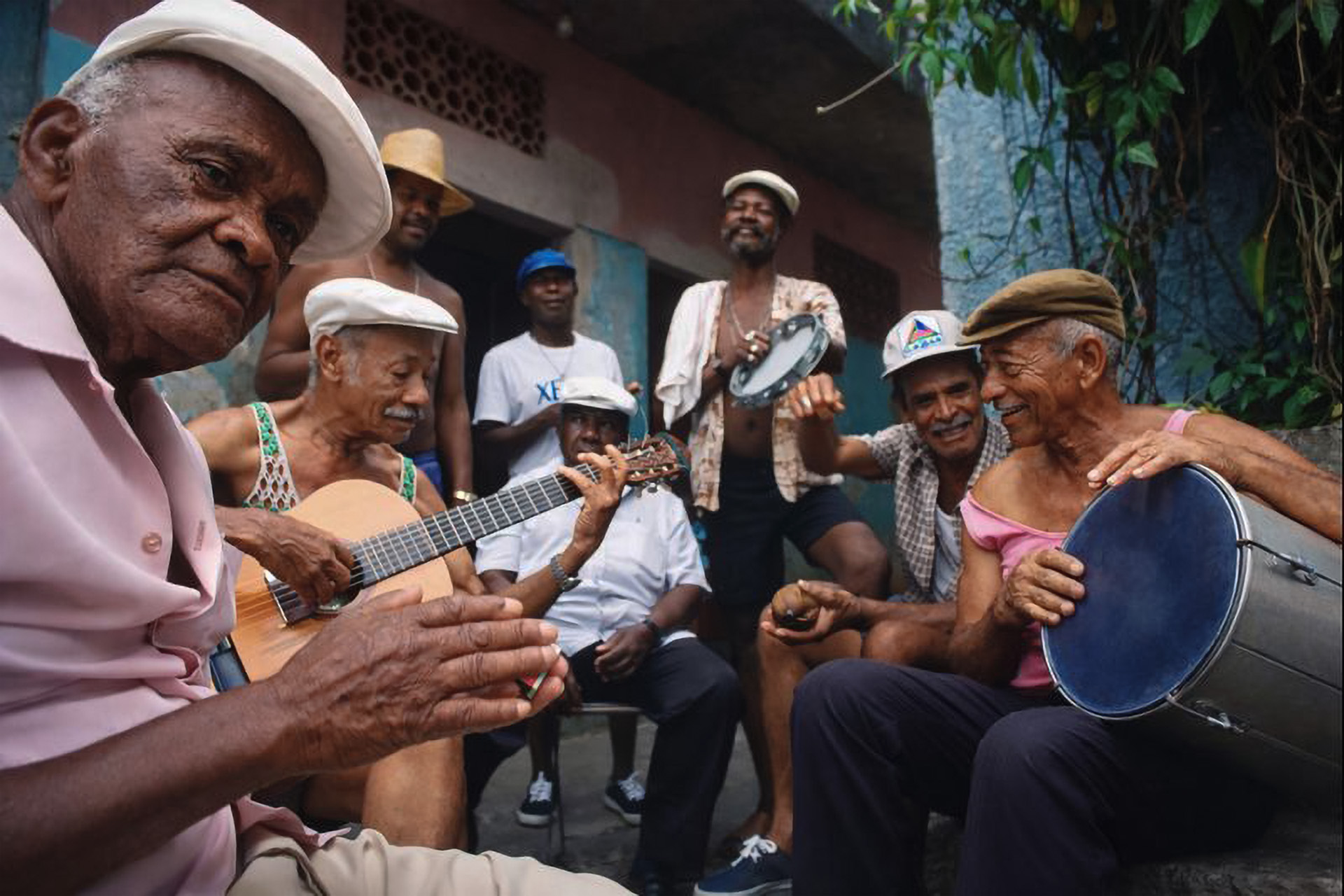 - Roda de samba no morro de Mangueira. Gasolina, Aluízio Dias, Zé Rock, Bira, Tinguinha (sentados E/D) e Neném Cotó (com pandeiro) — Ricardo Beliel/Getty Images (JPG)